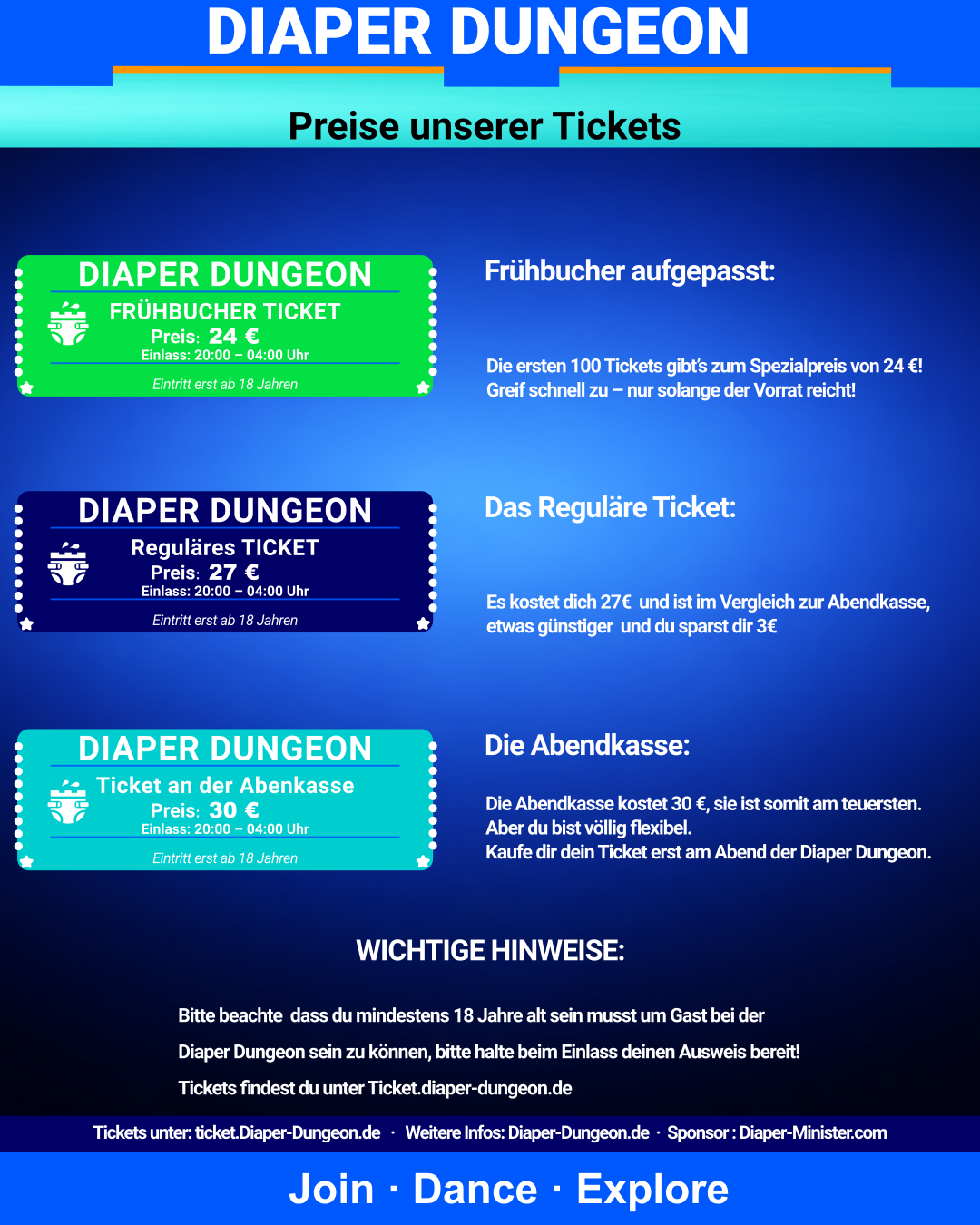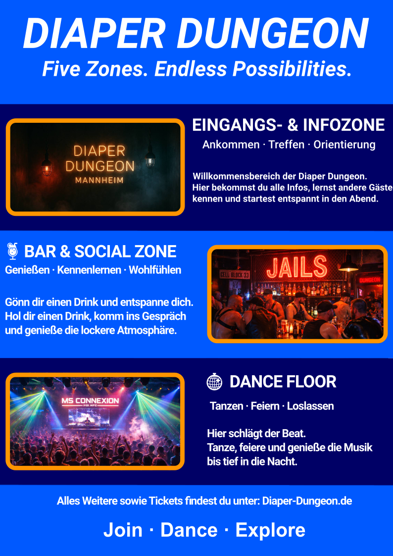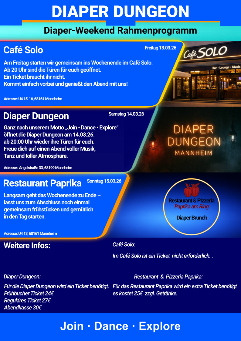 Ganz gleich, ob du Dich in Strampler, Latzhose, Body, Latex, MX Gear oder einem anderen Lieblingsoutfit mit Windeln wohlfühlst, wir laden Dich herzlich ein, an einer unvergesslichen Party teilzunehmen.